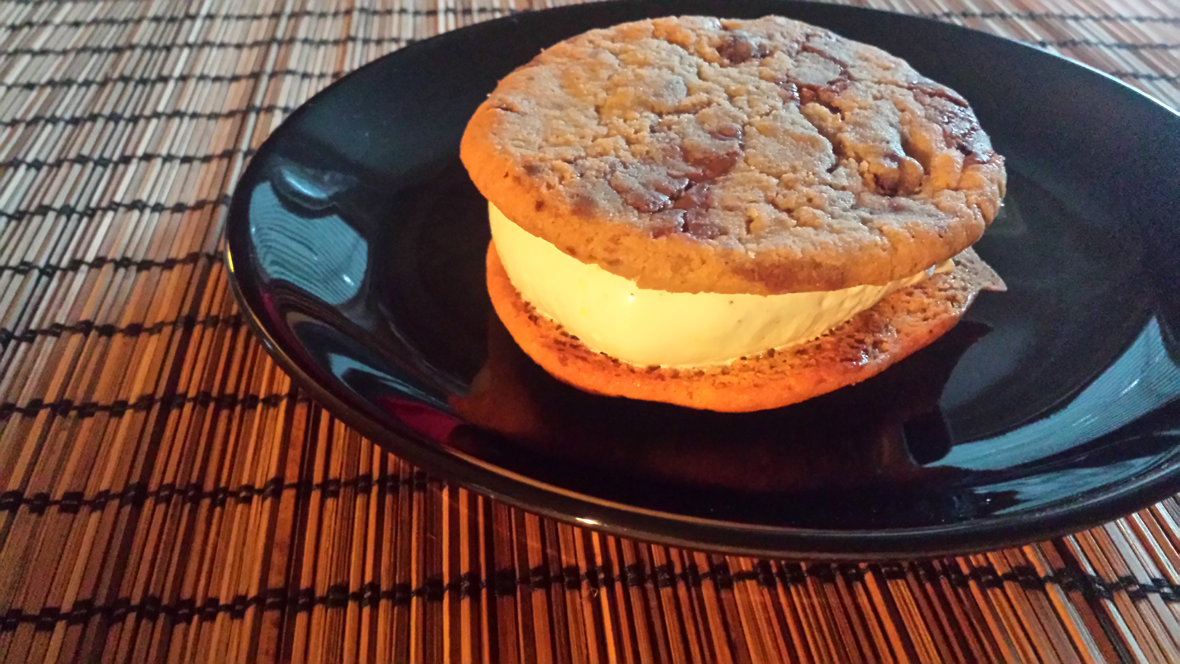 De koekjes op zich zijn al erg lekker, maar als je jezelf nu echt volledig wilt onderdompelen in een zalig badje zoetigheid kan je er een ice cream sandwich van maken. Dat is zoveel als 2 koekjes met daartussenin een laag ijs. Je raad het al, dat is wat ik heb gedaan 🙂