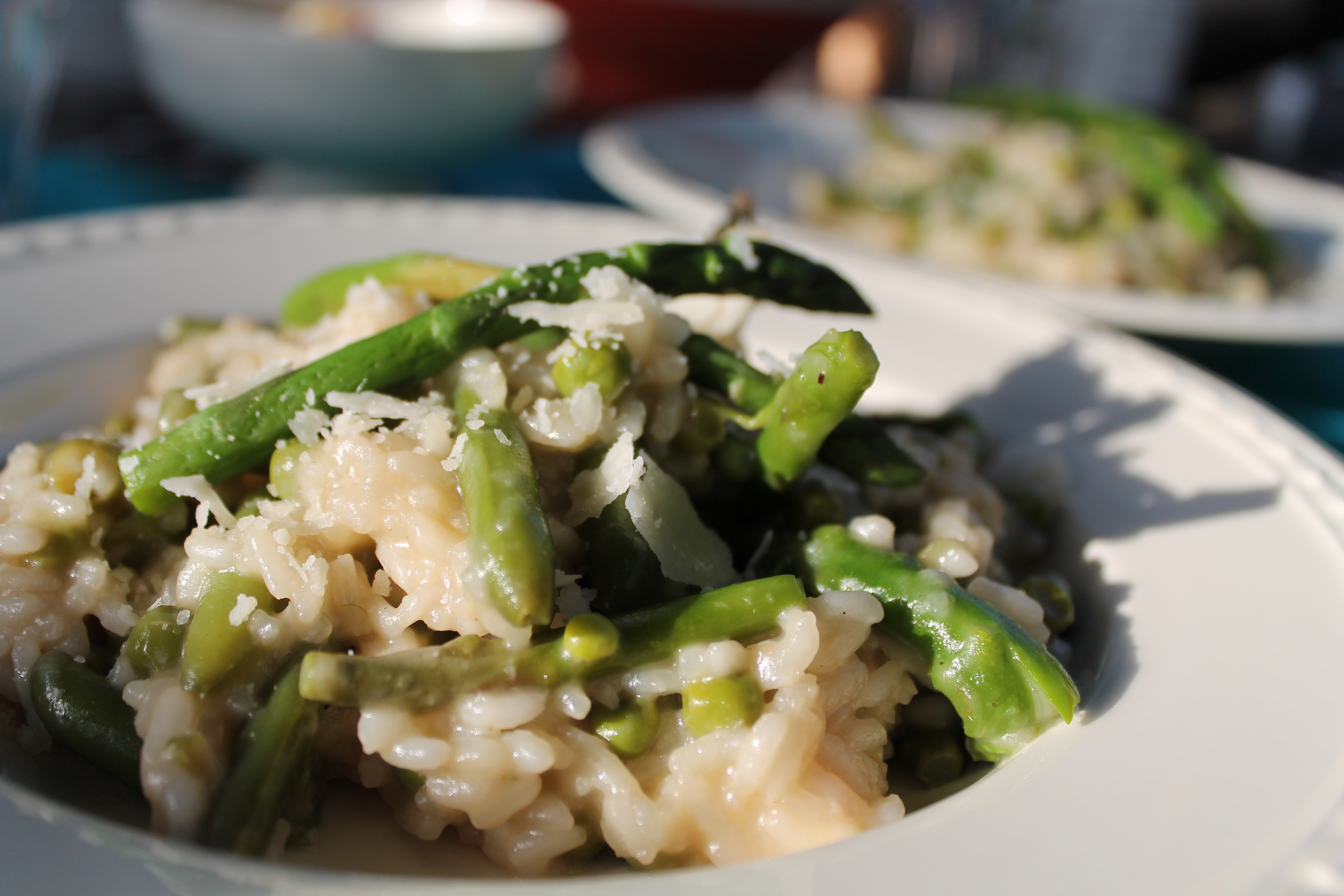Gebruik niet te veel groenten door de risotto. Dan gaat het hele idee van de risotto verloren en heb je eerder een groentestoofpotje met rijst. Dan een risotto met groenten.