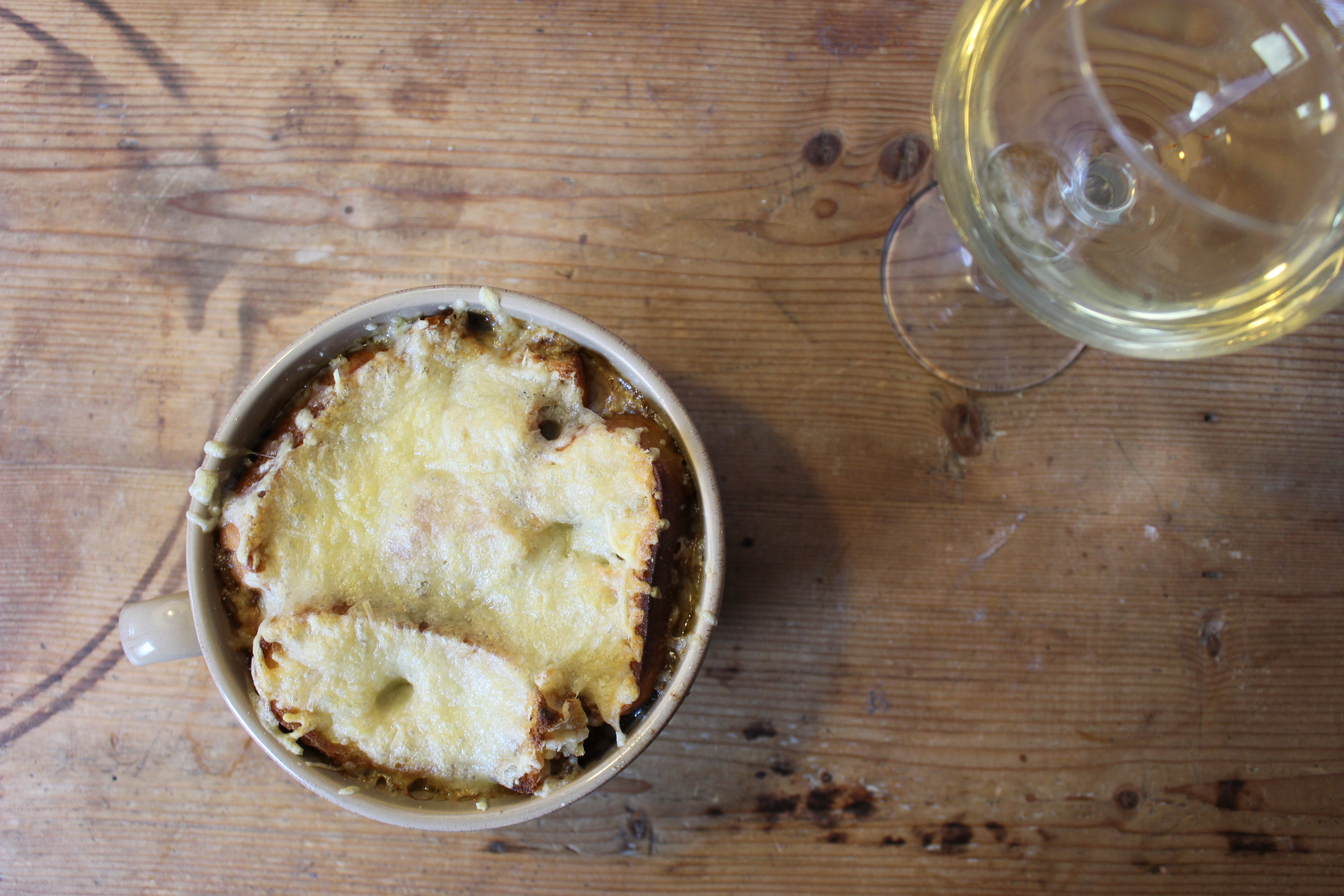 Een laatste dingetje waar je nog rekening mee kan houden is de prijs. Ik dacht dat uiensoep met mijn studentenbudget mijn beste vriend zou worden, want hé er zit toch bijna alleen maar ui door. Maar, omdat ik dacht dat ik goedkoop ging eten dacht ik ook dat ik best wel de duurdere kaas en de duurdere wijn kon pakken. Het was heerlijk, maar als je met een budget kookt laat de gruyère dan links liggen en pak bijvoorbeeld emmentaler of andere pittige, goed smeltende kaas en pak ook een wat betaalbaardere wijn.