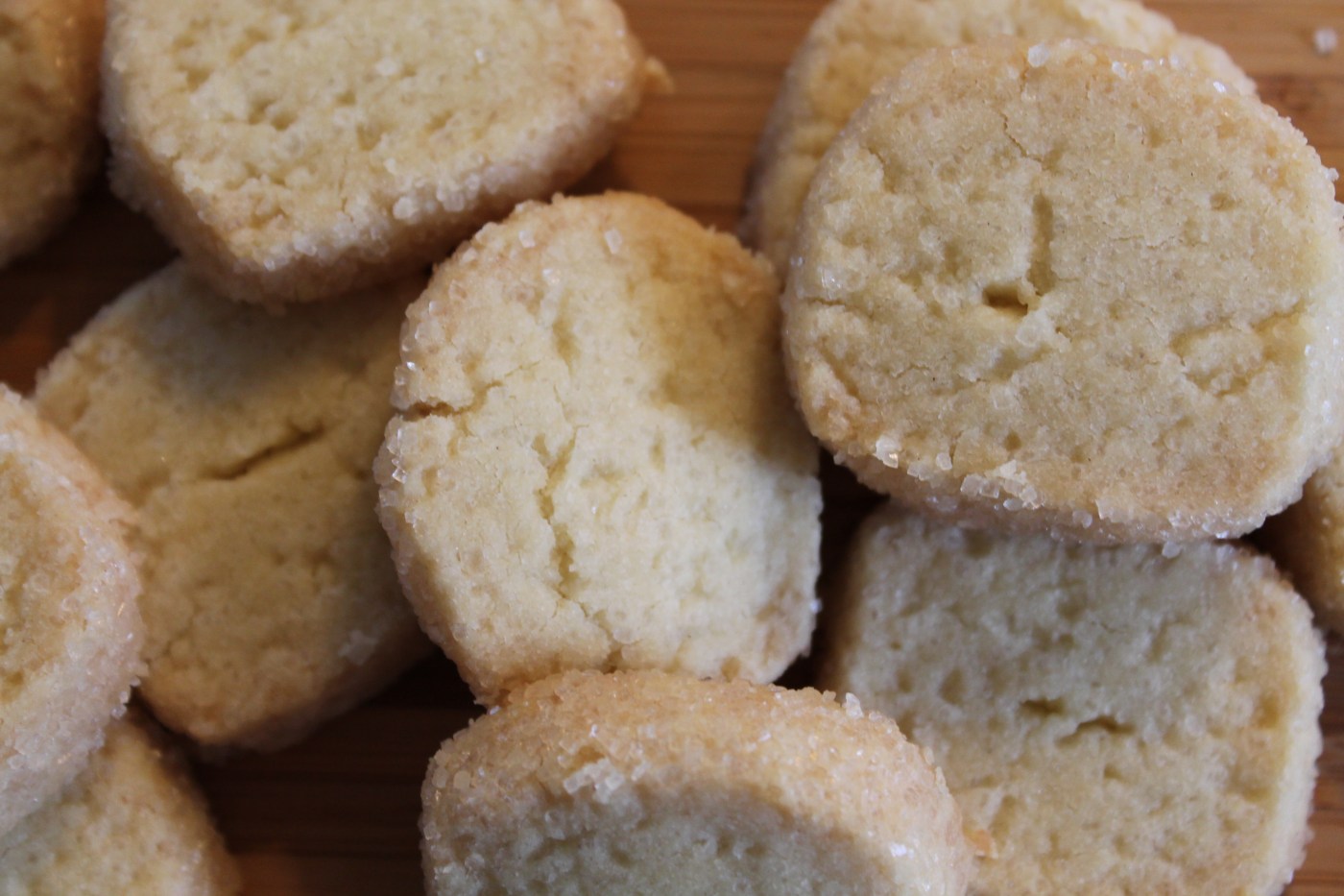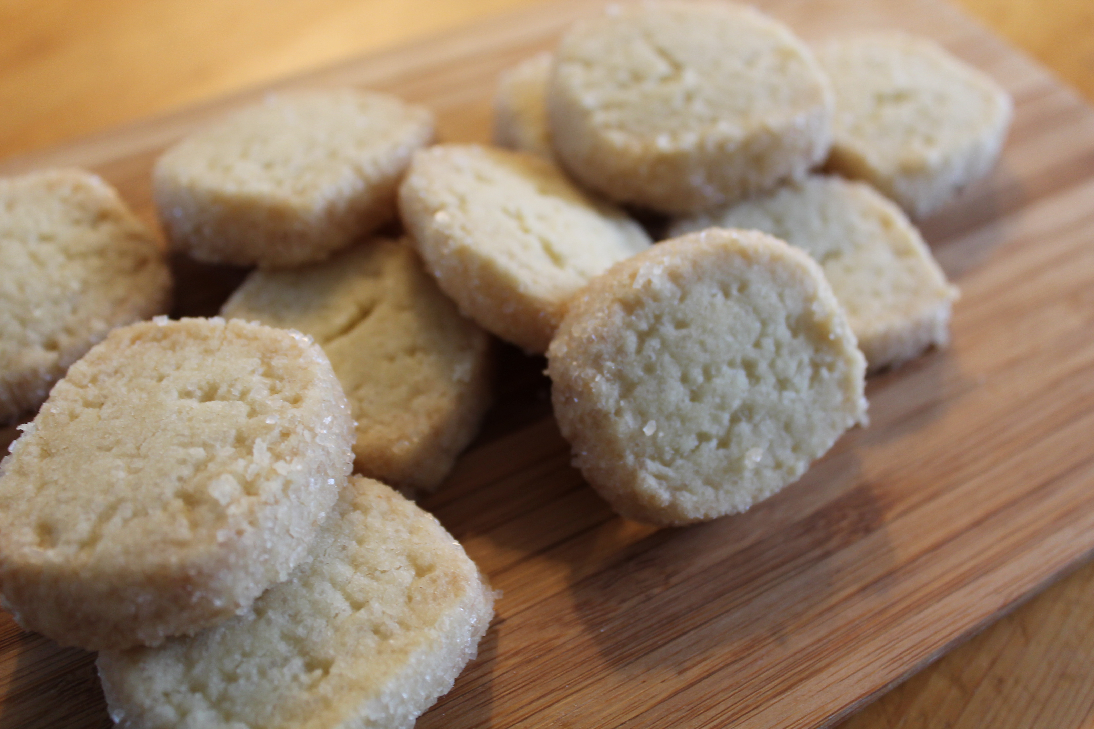 Maar goed. Ik was dus bezig met het deeg, toen ik me herinnerde hoe ik vroeger altijd koekjes maakte. Ik weet niet meer precies hoe we ze noemde, maar volgens mij was het zoiets als ‘Babette’s botermopjes’ (zo bescheiden als ik op 4-jarige leeftijd was). Maar goed, dat waren super simpele zandkoekjes, met een suikerrandje. (zo creatief als ik op 4-jarige leeftijd was).