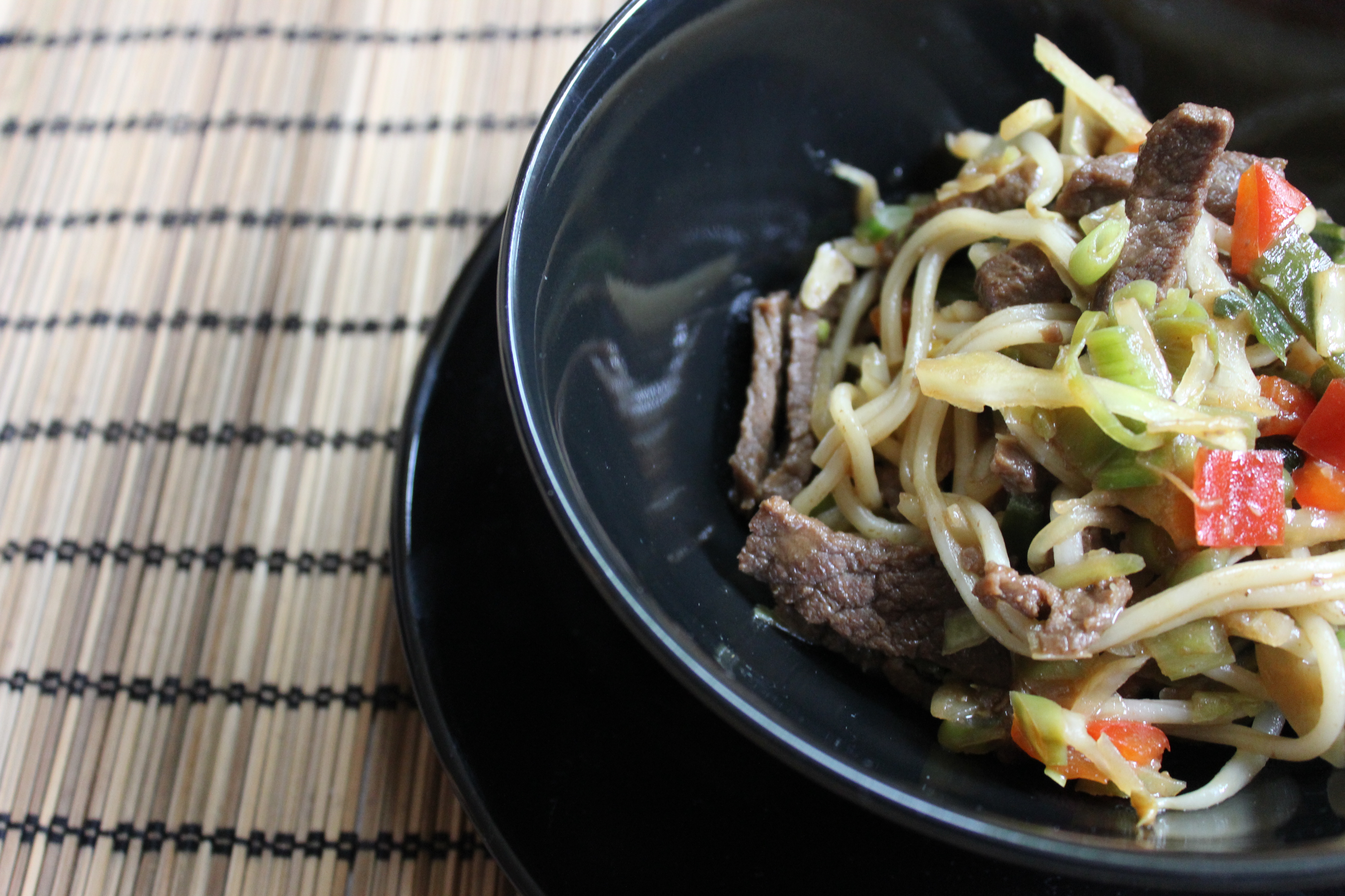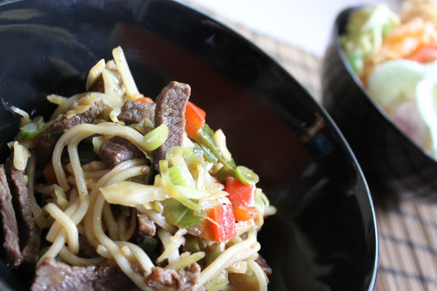 We hebben deze noedels voor de eerste keer gemaakt, toen the boyfriend zin had in afhaal noedels, maar ik dat ronduit weigerde. Als compromis besloten wij dat we de noedels dan maar zelf zouden maken. The boyfriend ging mee naar de winkel en stond erop dat het allemaal ‘niet te veel gedoe’ zou mogen zijn, dat het niet zo lang mocht duren en dat er veel vlees in moest zitten. In het recept hieronder vind je de hoeveelheden die ik lekker vind, maar als ik voor the boyfriend kook gaat er een dubbele hoeveelheid aan vlees door. Normaal ‘hoort’ er ook van die lange kroepoek bij, maar voor deze ene keer een uitzondering, omdat ik er zelfgebakken kroepoek bij serveerde. De kroepoek komt van de grote toko in de Markthal in Rotterdam.