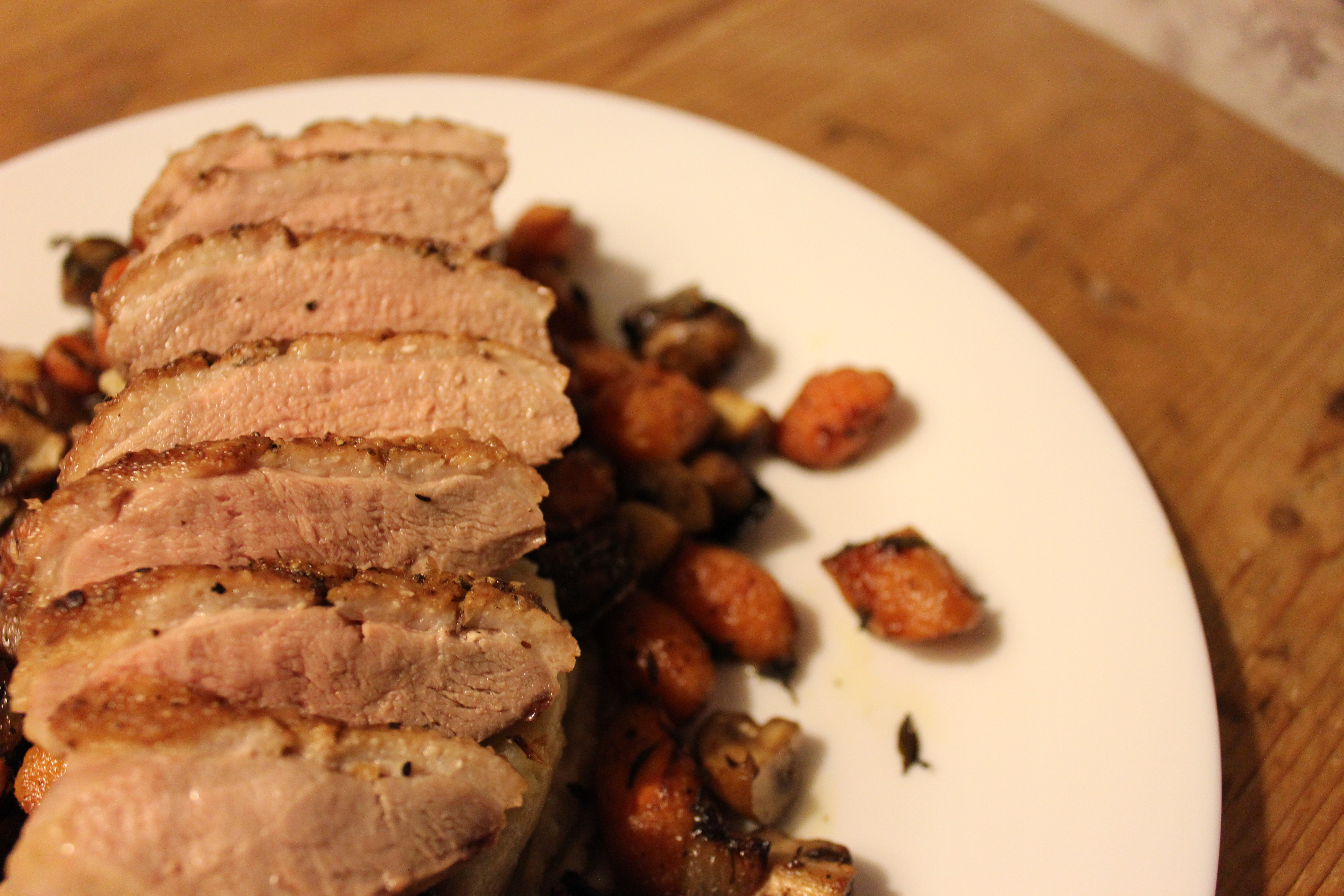 Het enige wild waar ik nooit echt warm van werd is eendenborst. Ik heb het een paar keer verkeerd gegeten, dat wil zeggen dat er steeds een enorme, taaie vetrand aanzat, en daardoor is het me tegen gaan staan. Tot het moment dat ik me deze week bedacht dat ik me daaroverheen moest zetten.