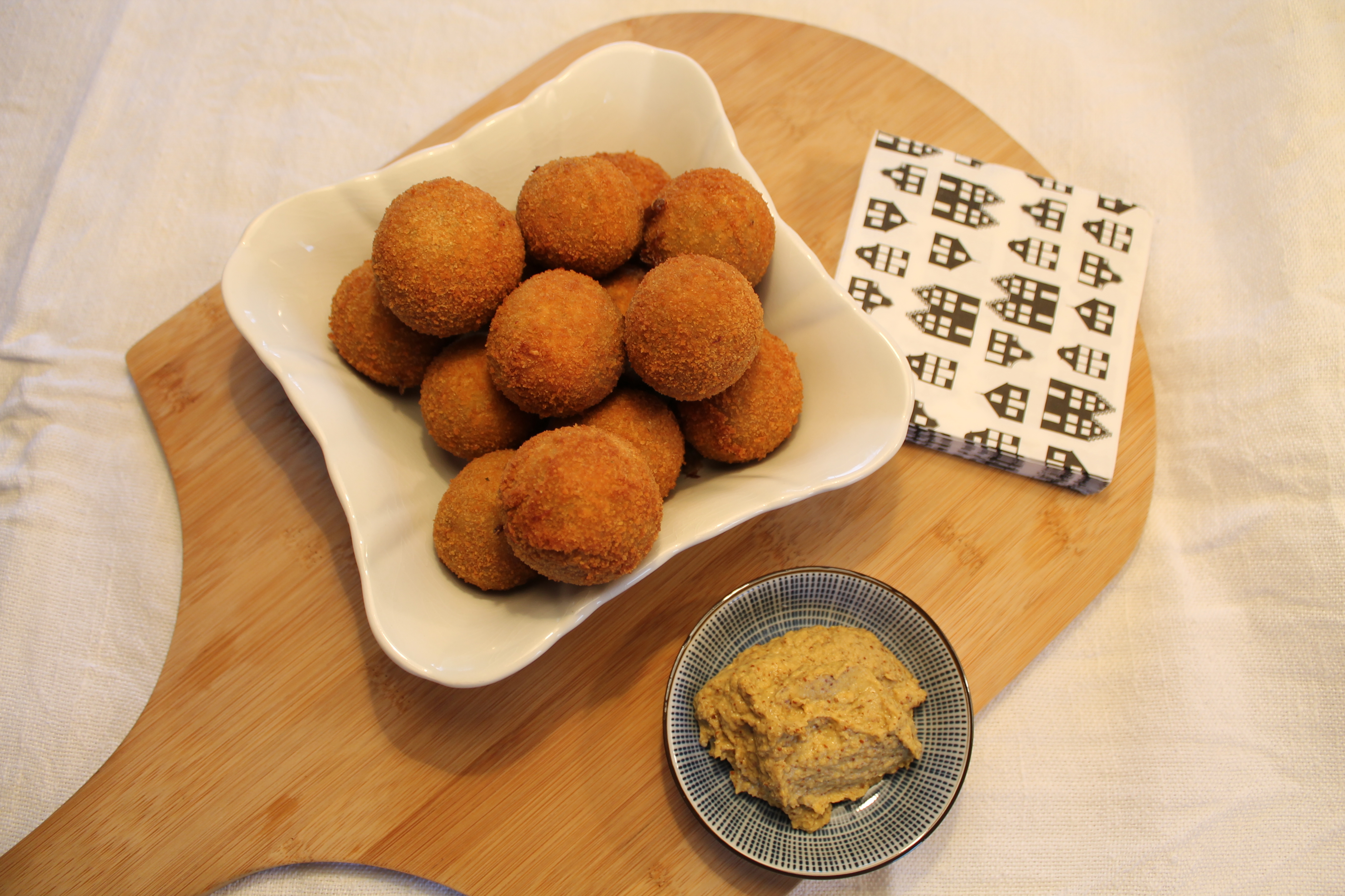 Verder heb ik de bitterballen misschien wat aan de grote kant gemaakt per ongeluk. 1 bitterbal van deze grootte bestaat voor mij uit 4 hapjes. Dat is misschien wat te veel van het goede als je het gewoon als borrelhapje maakt.