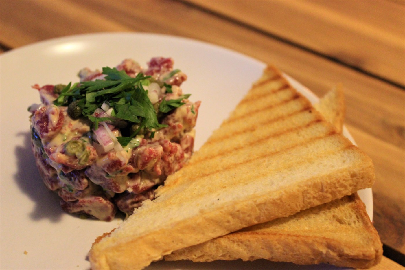 I lovee steak tartaar! Als ik steak tartaar op de kaart zie staan in een restaurant bestel ik het ook altijd. Toch maak ik het op de en of andere manier zelf nooit echt. Dit heeft een aantal redenen, onder andere omdat je goed moet opletten bij het snijden van het vlees, maar gelukkig kan je met deze cheat versie van steak tartaar ook prima uit de voeten!